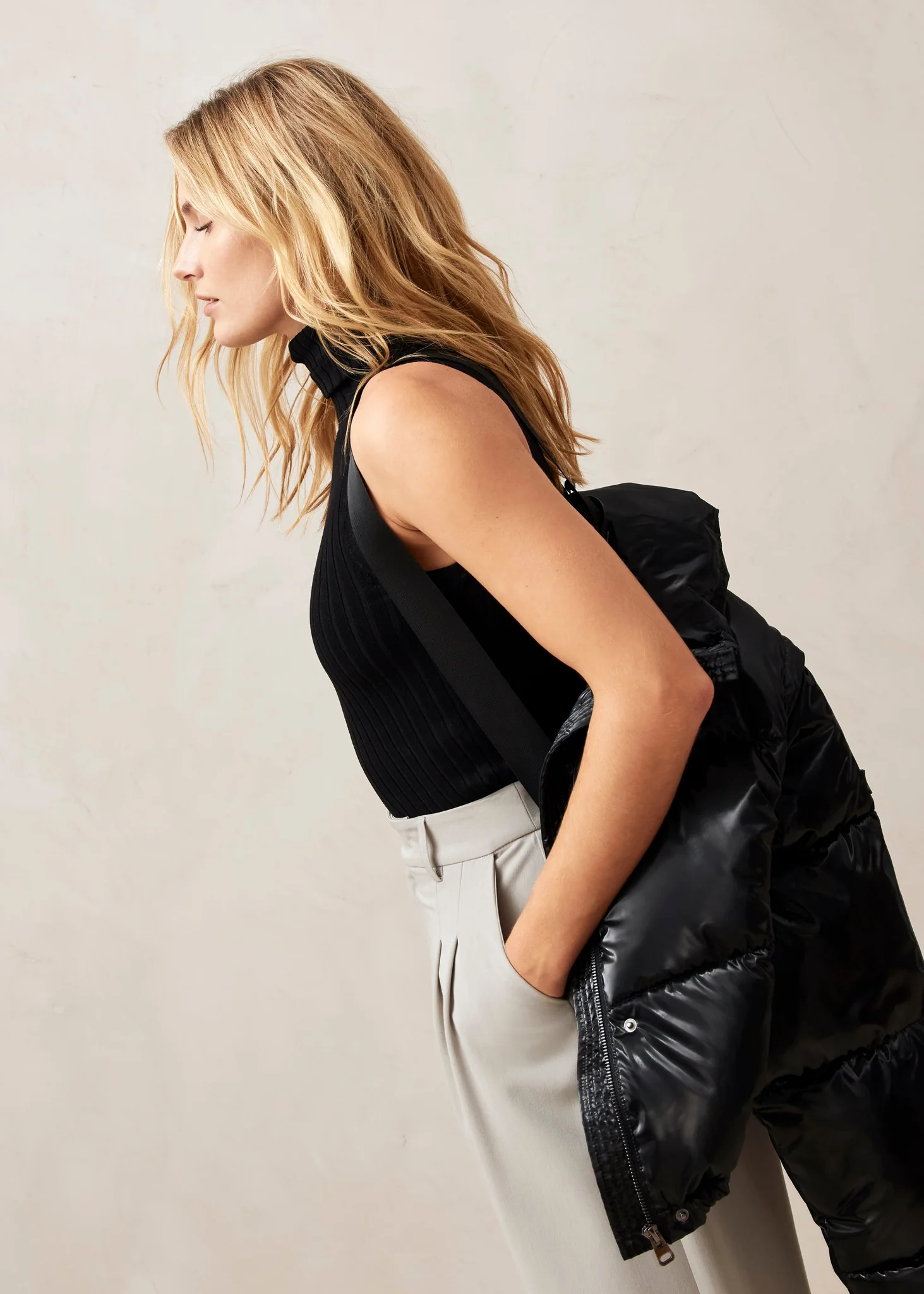 Yumuşak bir krem tonunda yeniden tasarlanan bu kuzu yünü Polo Yaka, kontrast nervürlü boyun gibi ince tasarım detaylarına sahiptir. Eyer omuz tasarımı daha fazla ilgi çeker. Boynu katlanmış veya dik olarak giyin.